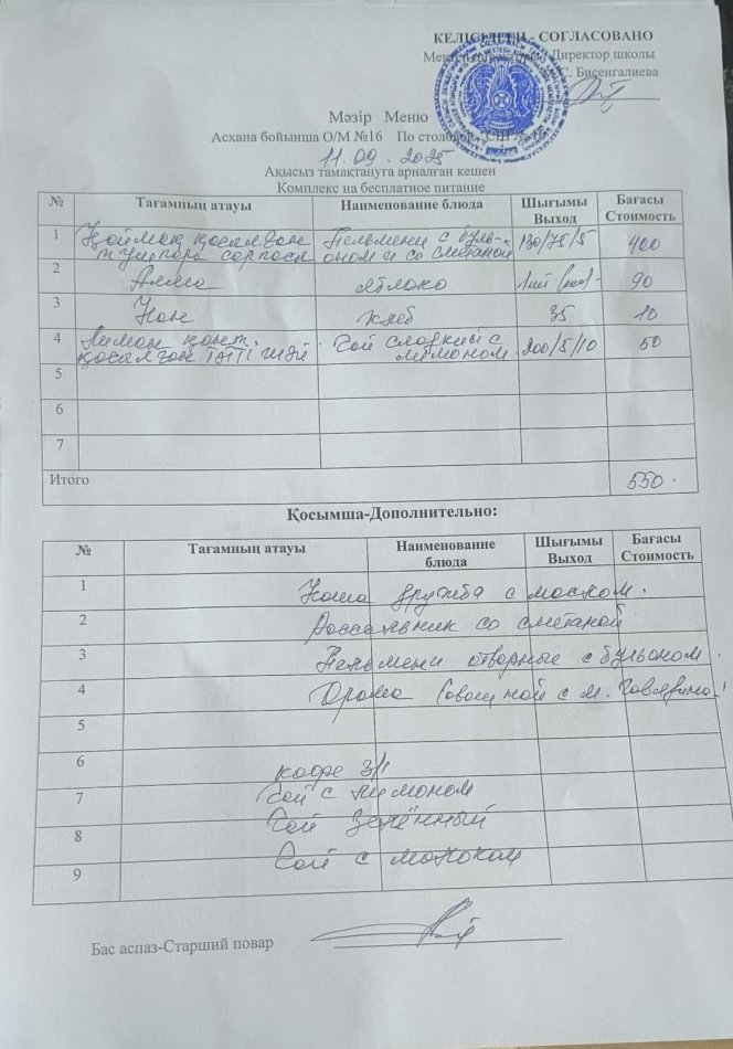 05 сентябрь 2025 Күндік ас мәзір